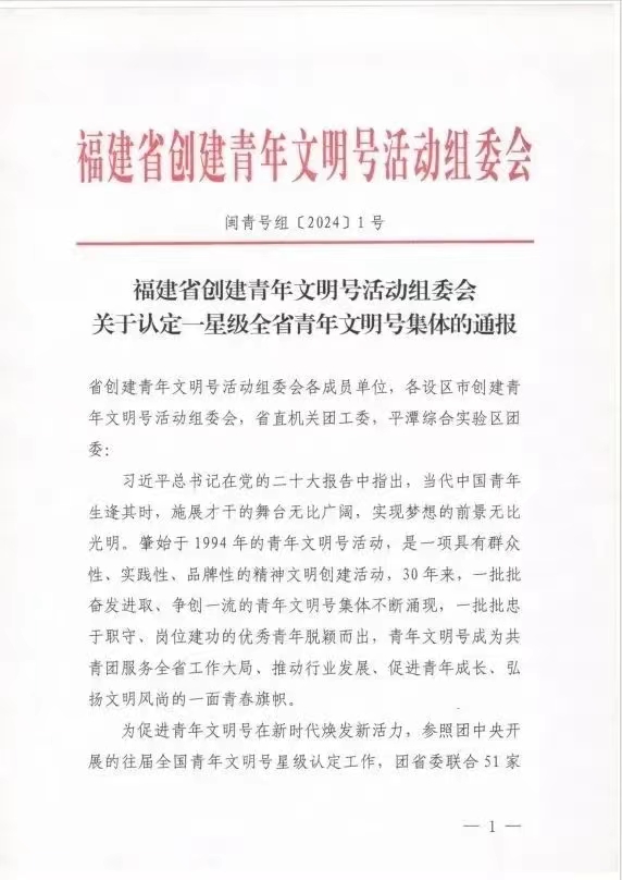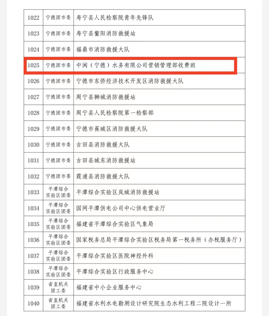 今年,根據(jù)《福建省創(chuàng)建青年文明號(hào)活動(dòng)組委會(huì)關(guān)于認(rèn)定一星級(jí)全省青年文明號(hào)集體的通報(bào)》(閩青號(hào)組〔2024〕1號(hào)),經(jīng)公示,寧德水務(wù)公司營(yíng)銷管理部收費(fèi)班獲評(píng)“一星級(jí)全省青年文明號(hào)”集體!