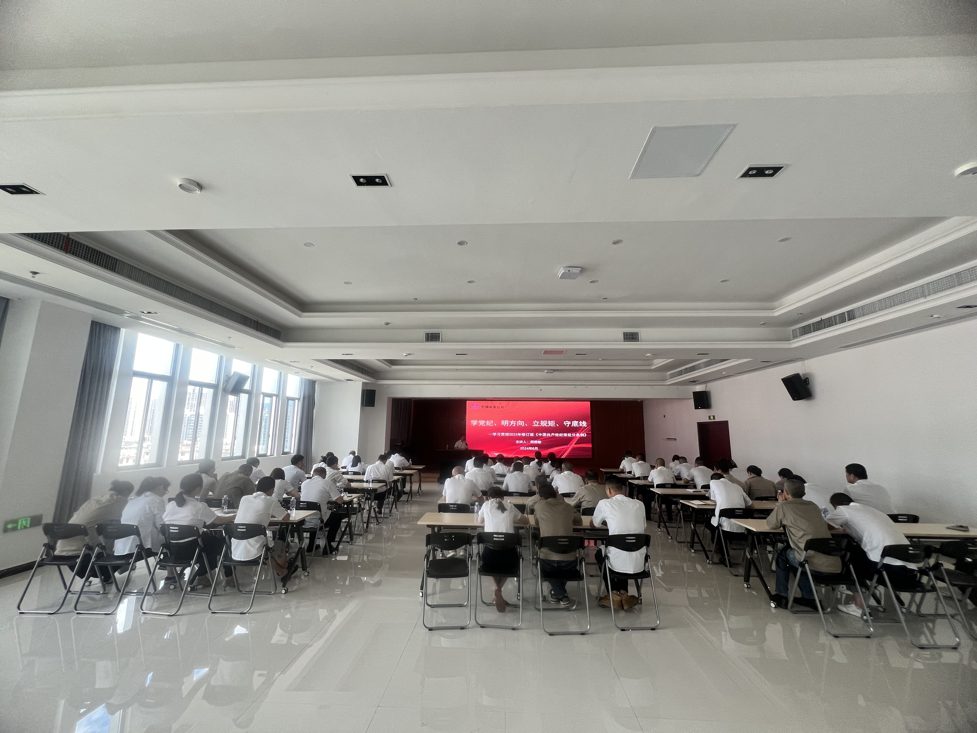 為深入學(xué)習(xí)領(lǐng)會《中國共產(chǎn)黨紀(jì)律處分條例》,推動黨紀(jì)學(xué)習(xí)教育走深走實,進(jìn)一步強化紀(jì)律意識,筑牢思想防線。6月24日下午,寧德水務(wù)公司黨委書記周善敏為公司全體黨員、中層以上管理人員講授“學(xué)黨紀(jì)、明方向、立規(guī)矩、守底線”的黨紀(jì)學(xué)習(xí)教育專題黨課。